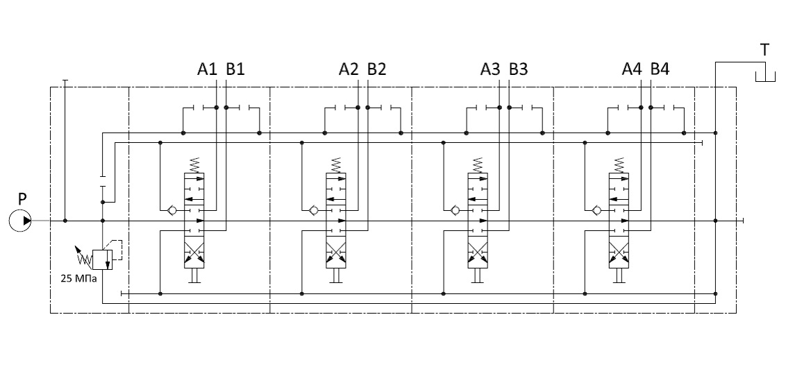 - Имеется возможность встраивания в рабочие секции предохранительных и обратных клапанов;